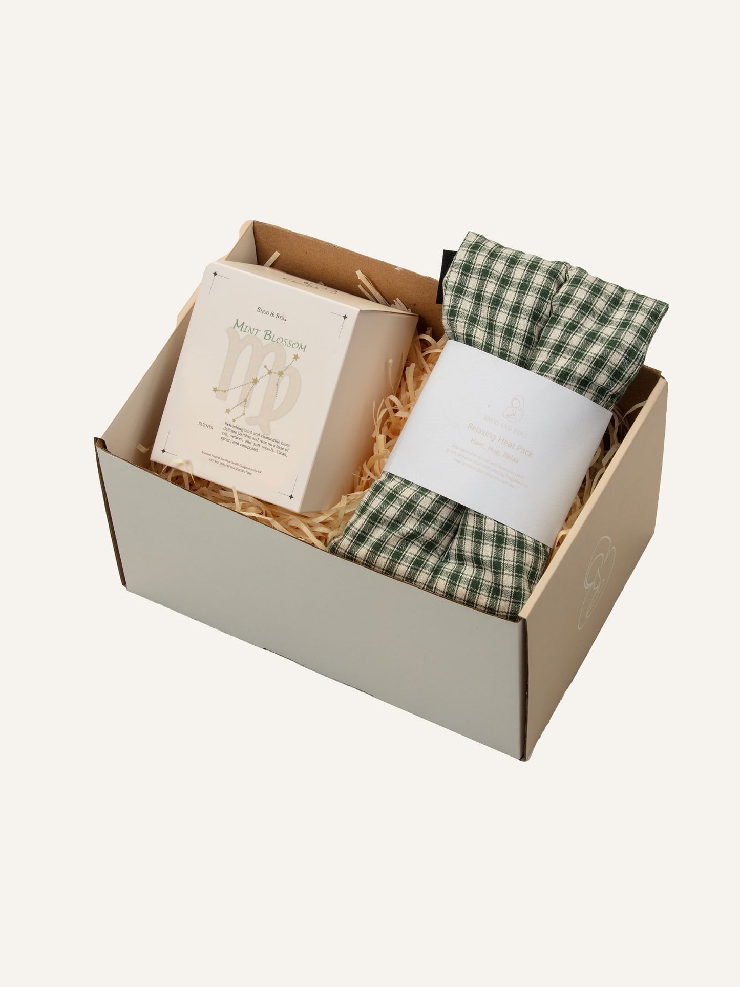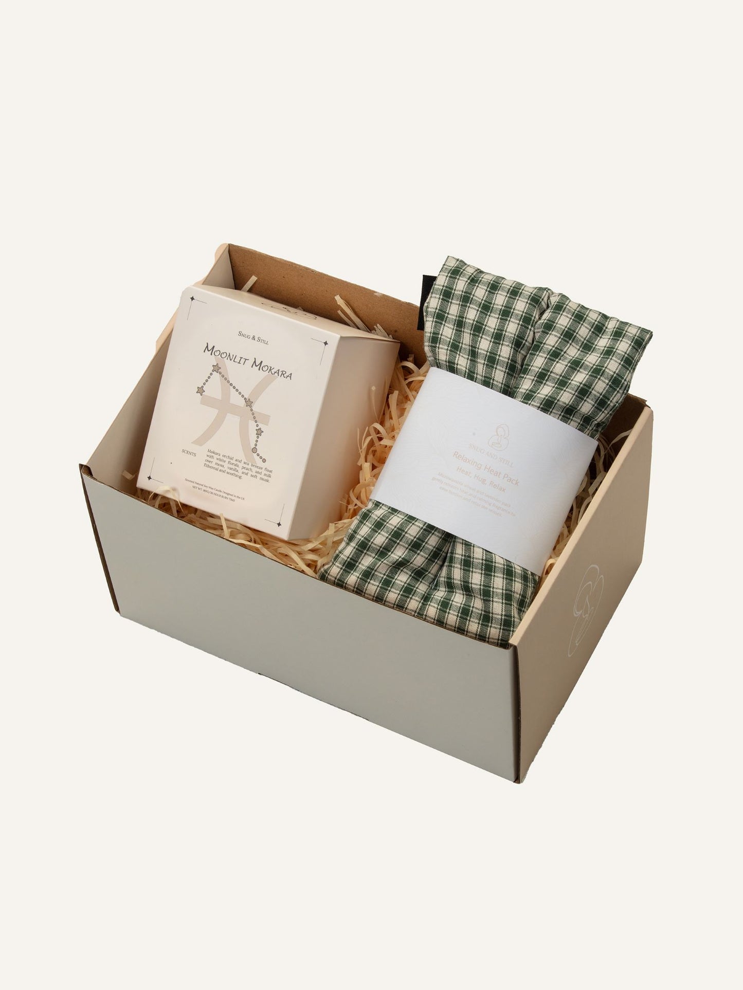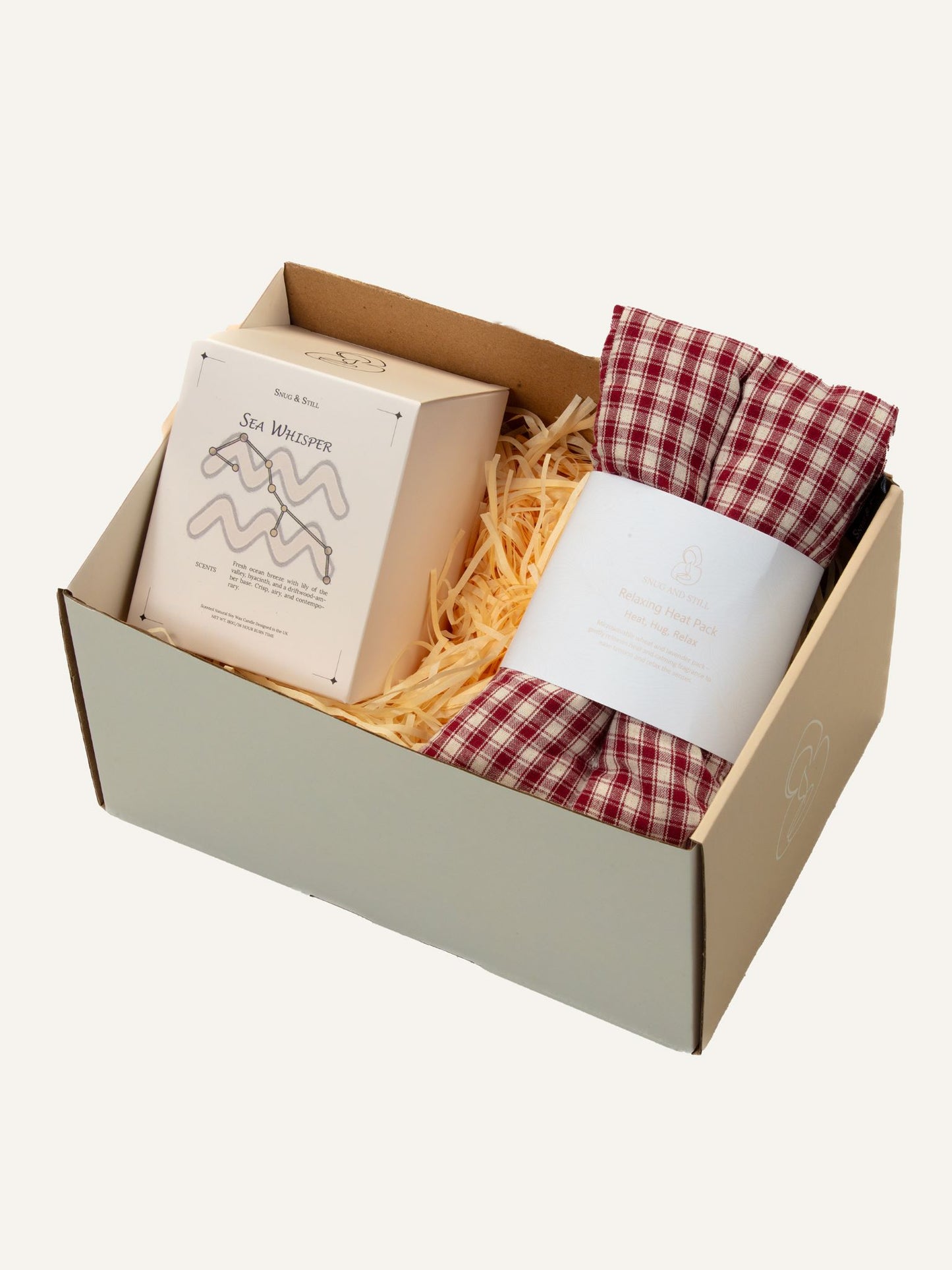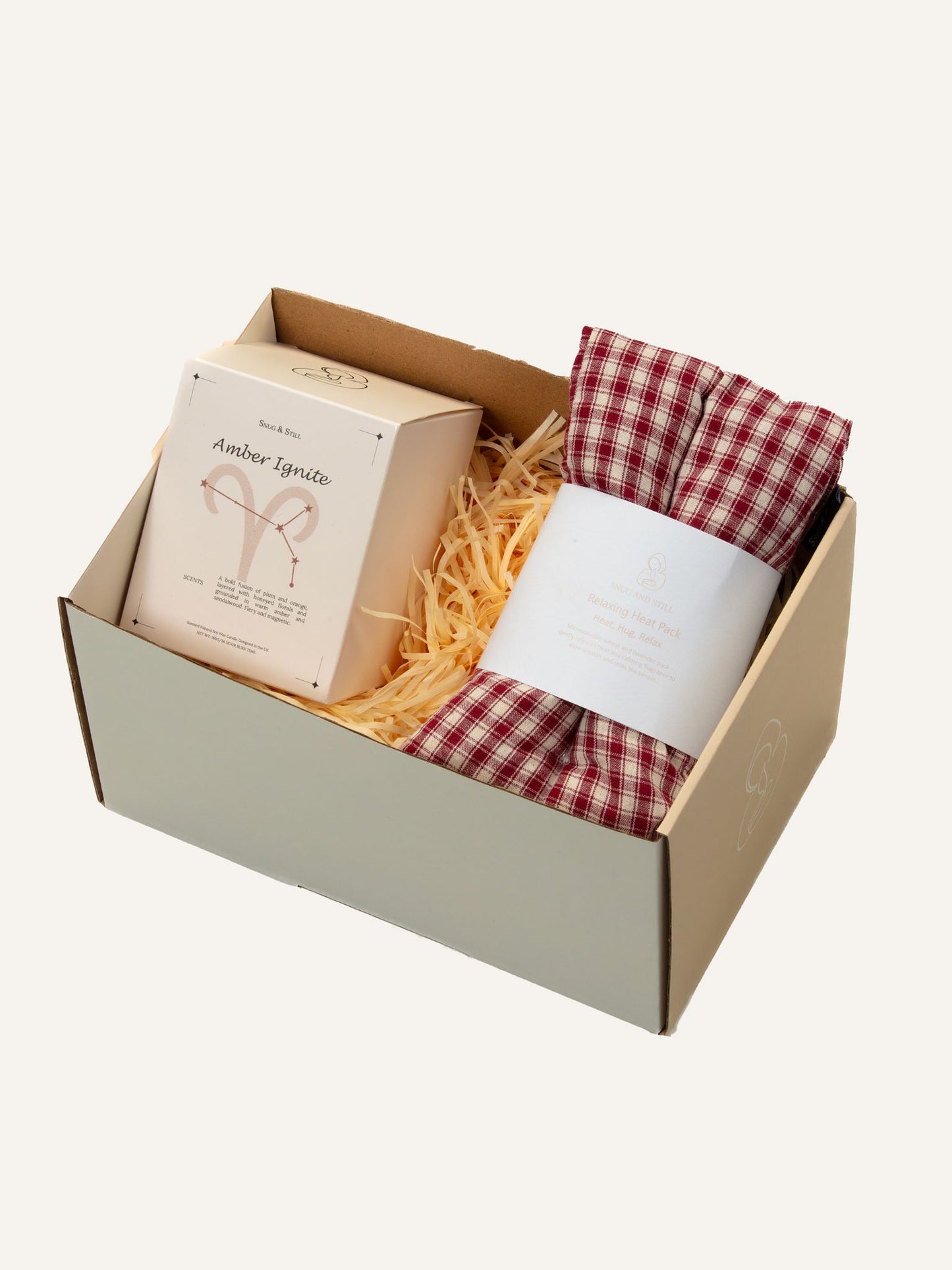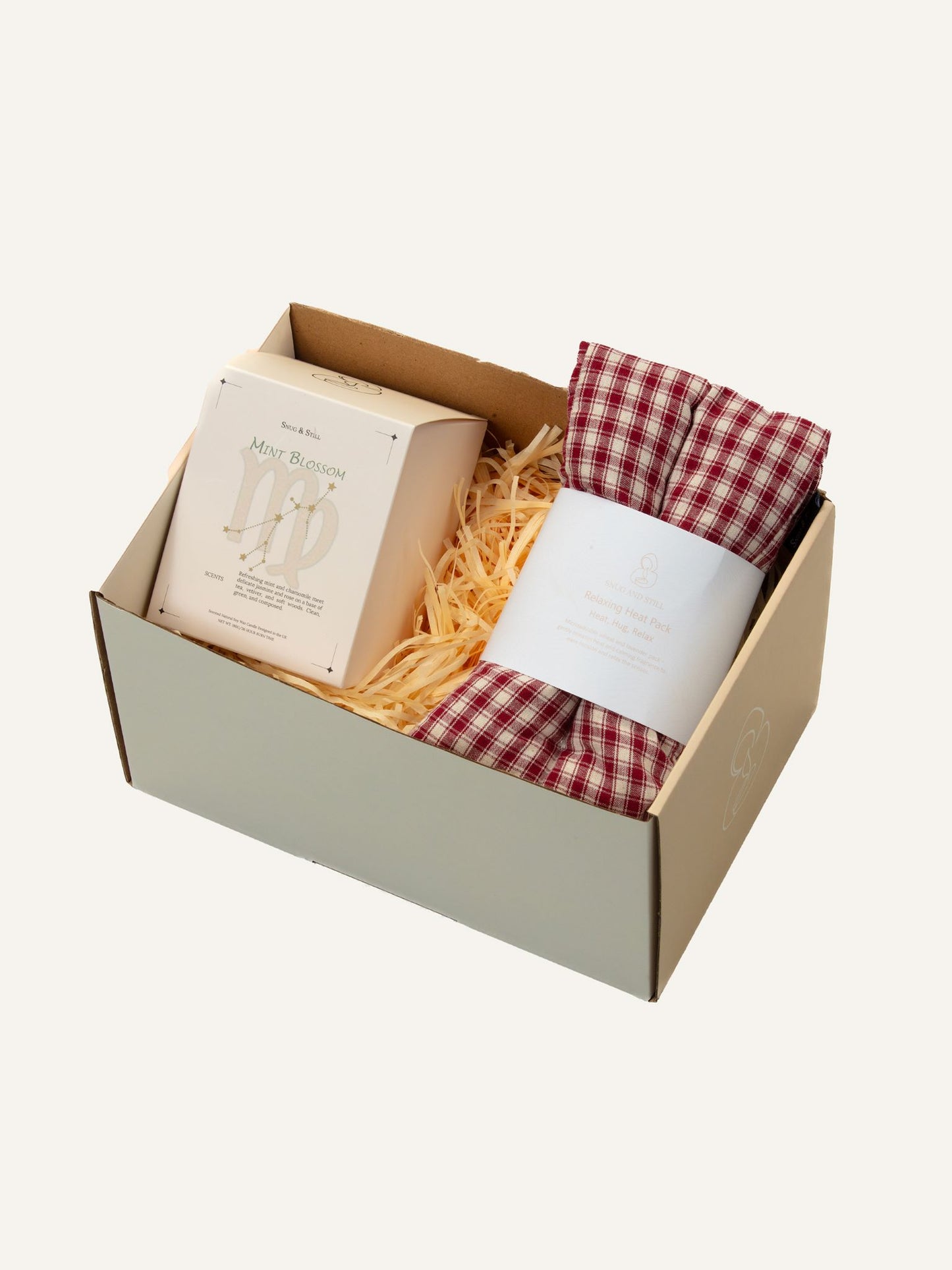 This calming duo includes a hand-poured zodiac candle and our natural lavender wheat pack. The candle sets the tone: soft light, slow breath, stillness. The heat pack follows, wrapping sore muscles and tired thoughts in comfort. Whether heated or cooled, it’s a grounding tool for evenings, rest days, or when you simply need a pause.